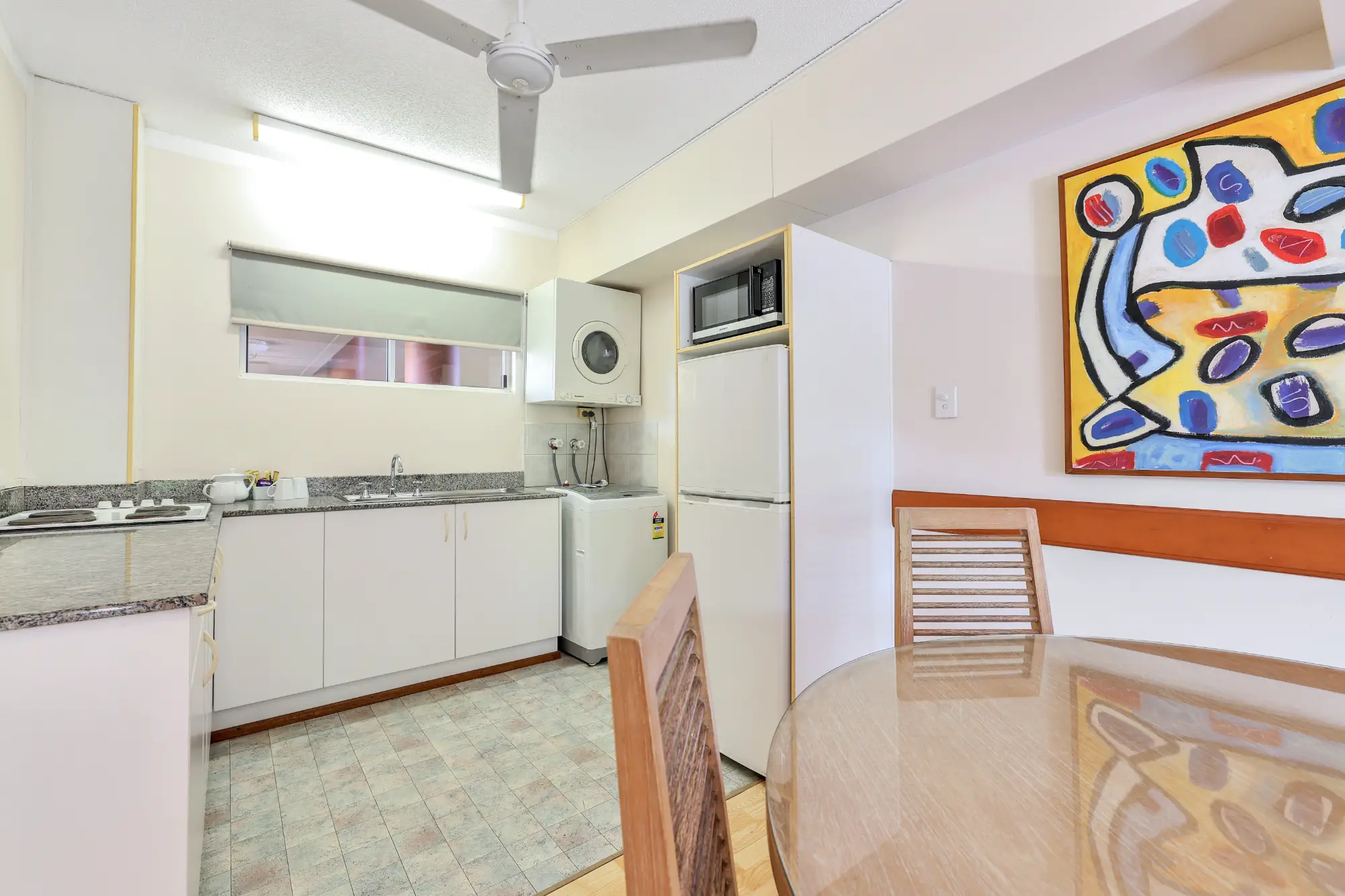 The kitchenette includes everything you need to cook up a storm including a stove top, microwave, fridge/freezer as well as a washing machine and clothes dryer.